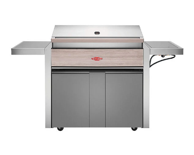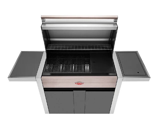 Exclusive to Barbeques Galore, BeefEater 1500 series comes in 3,4 & 5 burner with side burner cart models. This series boasts of stylish woodgrain look control cover/handy bench, large side table. It has easy to assemble cart with storage option. Spacious shelving provides more convenience to place things. Ignition on every knob for ease of start, 15 MJ wok burner is concealed increasing the shelf space when not in use. Powerful 15MJ cast iron burners and flame tamer provide even heat distribution to create superior results. Control panel hideaway when not in use gives a seamless look to your outdoor living space.