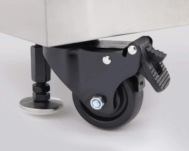 - Â 304 grade stainless steel trolley with side table, tool hooks, icebox & chopping board