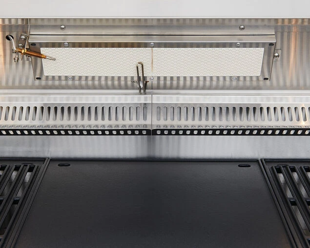 With cast stainless burners and stainless-steel vaporisers, you have one of the most durable, flexible and efficient cooking systems available. Cast stainless heats quickly, maintains consistency and lasts a very long time. With 17MJ of power in each burner, sear steaks at high heat, or turn the power down, giving you the choice in what you cook and how you cook it. And the dual stainless-steel vaporisers efficiently disperse the flames across the grill and plate surfaces whilst reducing those flare ups.