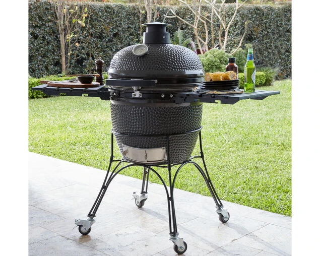 The 56 cm Firehawk Kamado uses a durable Dual Anti-Rust Protection whereby the frame is first galvanised, and then given an anti-rust treatment alongside a plastic coating. This dual process ensures the best possible protection against rust; particularly from any rust problems caused from inadvertent bumping, or damage which removes the plastic coating, exposing the raw iron component.