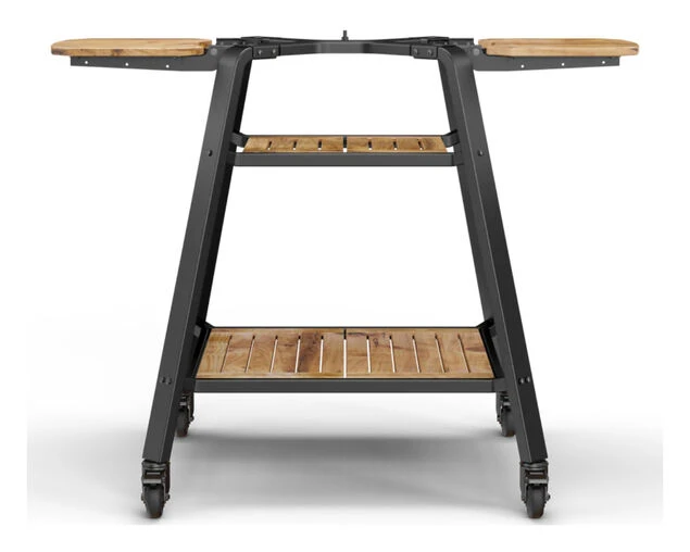Designed with cooking on the Dome in mind, your oven securely connects to the stand with an easy turn fastener and sits at the perfect height for cooking. The bamboo shelves, hanging hooks and adjustable wings are built in for convenience while the four large wheels make it easy to move your oven around your backyard.