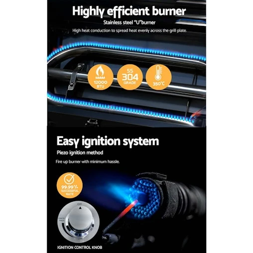 10,000 BTU stainless steel for each main burner