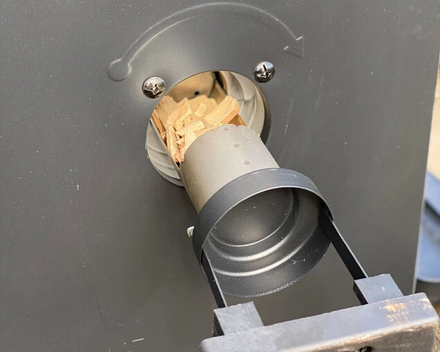 - “Patented” side wood chip loading system allows you to add wood chips without opening door.