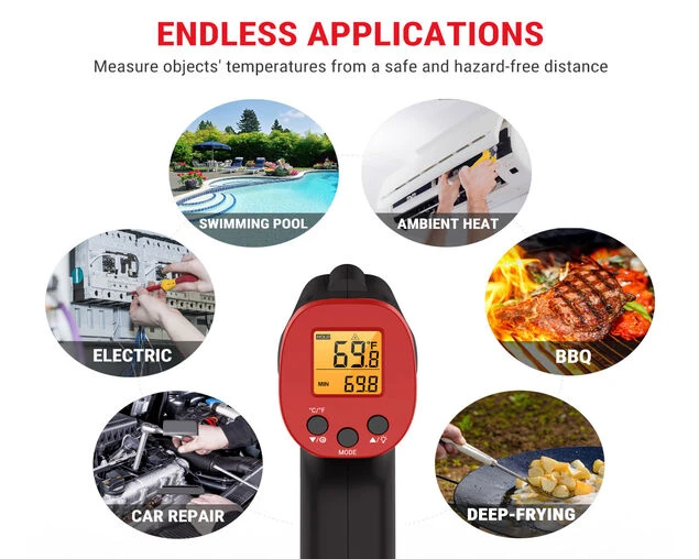 With a distance to spot ratio of 12:1 and a response time of < 500Ms, this allows the infrared temp gun