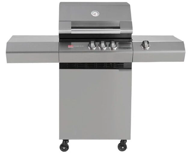 Ideal for balconies, smaller decks and patios, this compact unit has plenty of power and capacity if you need to cater for extra visitors. The sturdy cart has internal gas cylinder storage, double skin cupboard hinged doors and super strong shelves.