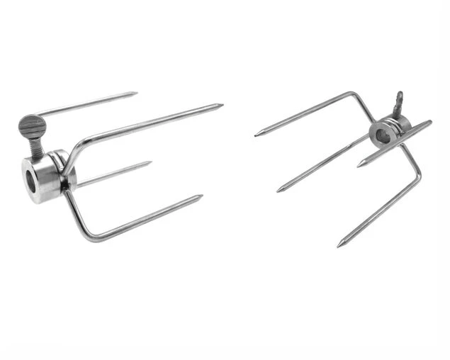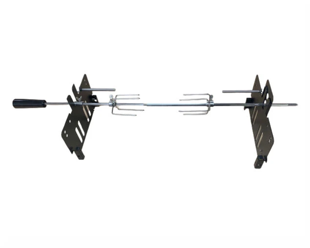 The rotisserie shaft & prongs are made from 304 grade stainless steel which are more rust resistant and durable then standard chrome plating.